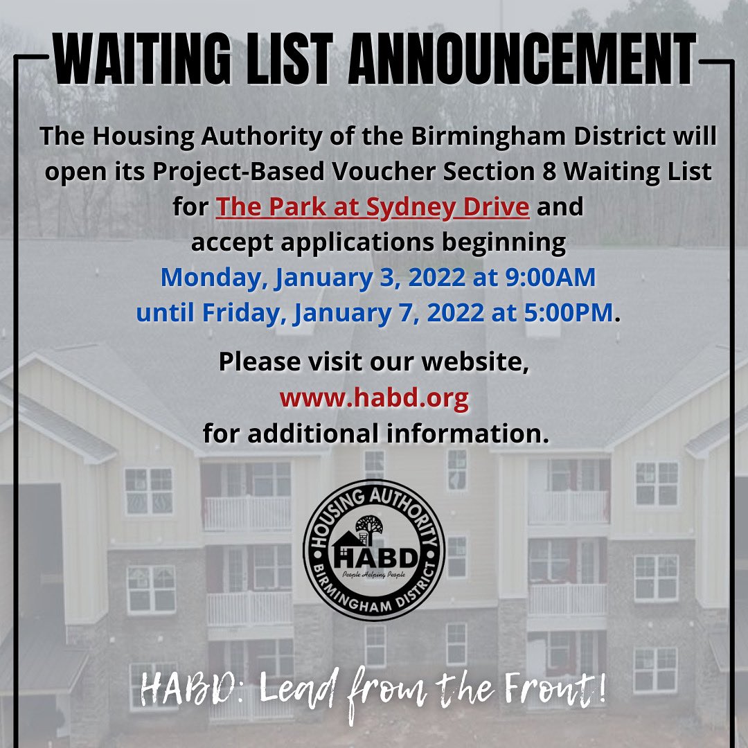 Birmingham Housing Authority On Twitter Birmingham Have You Marked Your Calendar For January 3rd Don T Forget Habd Will Open It S Project Based Voucher Section 8 Waiting List For The Park At Sydney
