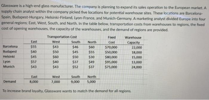 Solved Glassware Is A High End Glass Manufacturer The Chegg Com